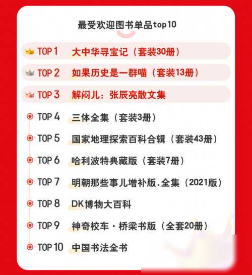 在“423阅读狂欢节”的推动下,图书销售成绩斐然。据统计,图书全品类成交额环比增长高达146%,其中童书、历史、文学、经济等品类更是销量飙升,成为了最受欢迎的图书类别。同时,《大中华寻宝记》、《如果历史是一群喵》等经典之作也备受读者喜爱,成为了本次活动的热销单品。