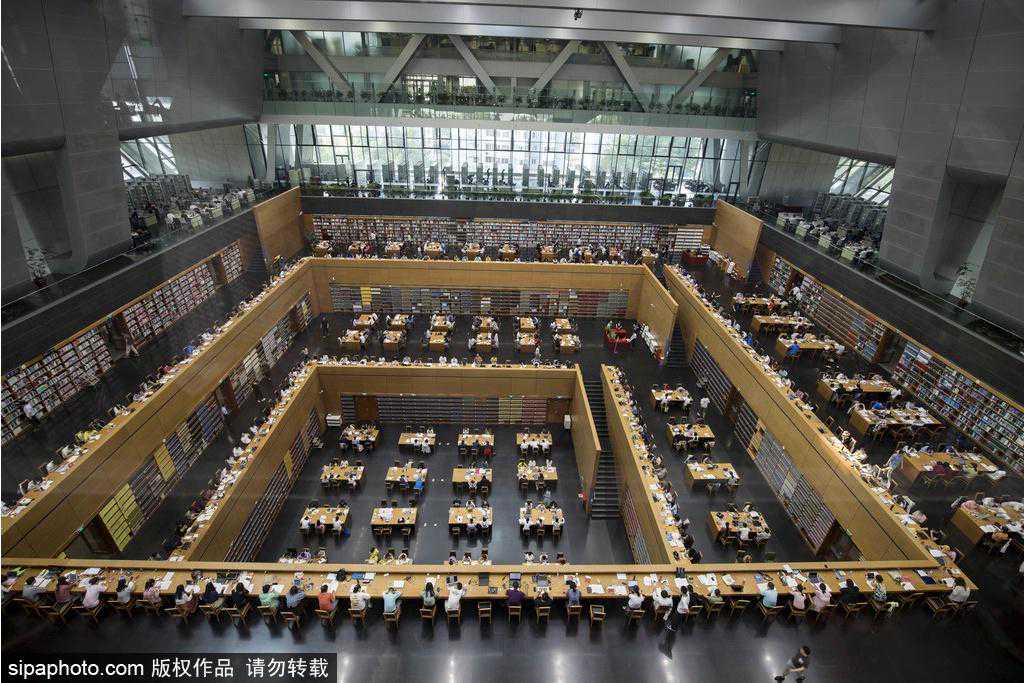国家图书馆的建筑也非常有特色,各区域用玻璃进行分割,大厅采取了开放式设计,通透自然,拥有大家之气。坐电梯到顶层俯瞰整个大厅,直接上图感受一下视觉冲击。玻璃屋顶使整个图书馆光线充足,身处于阅览中庭的人们仿佛置身于大大的庭院。当阳光洒在地板上,这里便能满足你对图书馆的一切幻想。